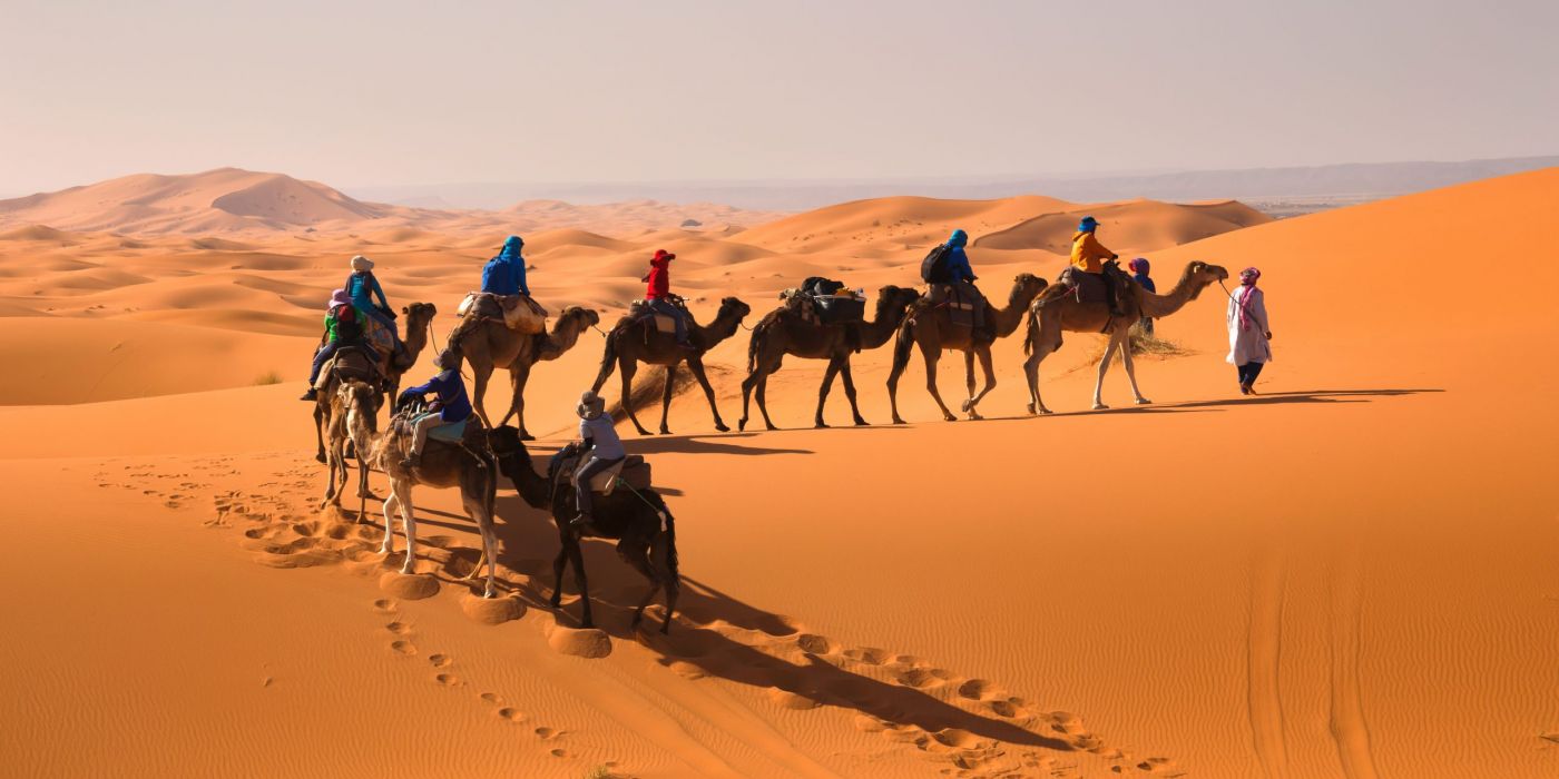 Este desierto de dunas rojizas y grandes es el más visitado de Marruecos y también el que está más cerca de la zona no desértica del país. Quizá pasar allí más de dos días no tenga sentido. En el desierto más allá de fotografiar el espectacular paisaje y montar en camello por sus increíbles dunas de hasta 150m , este emplazamiento no ofrece mucho más ocio, sin embargo, es obligatorio pasar al menos una noche del viaje en una de las jaimas que se levantan en determinados puntos del desierto.
