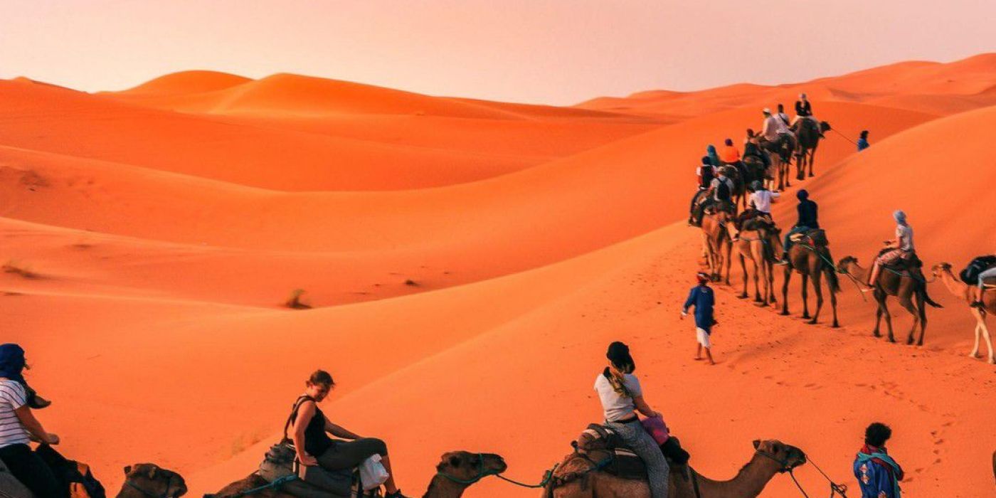 Montar en camello es la forma tradicional de explorar las dunas de Erg Chebbi. Los paseos suelen durar entre una y dos horas y ofrecen una manera tranquila de disfrutar del entorno. Los camellos, conocidos como los «barcos del desierto», se adaptan perfectamente al terreno arenoso, permitiendo a los visitantes experimentar un viaje que rememora las antiguas rutas de las caravanas.