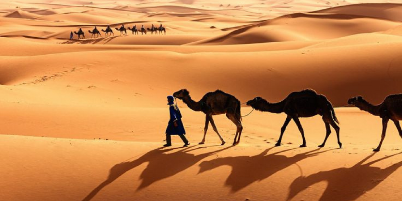 No hay nada más emblemático de Marruecos que su vasto desierto. El desierto del Sahara es uno de los lugares más mágicos del mundo, donde las dunas doradas se extienden hasta donde alcanza la vista. Puedes vivir una experiencia única montando en camello hacia un campamento bereber y pasar la noche bajo un cielo estrellado. Erg Chebbi, cerca de Merzouga, es uno de los lugares más visitados para disfrutar de esta experiencia.