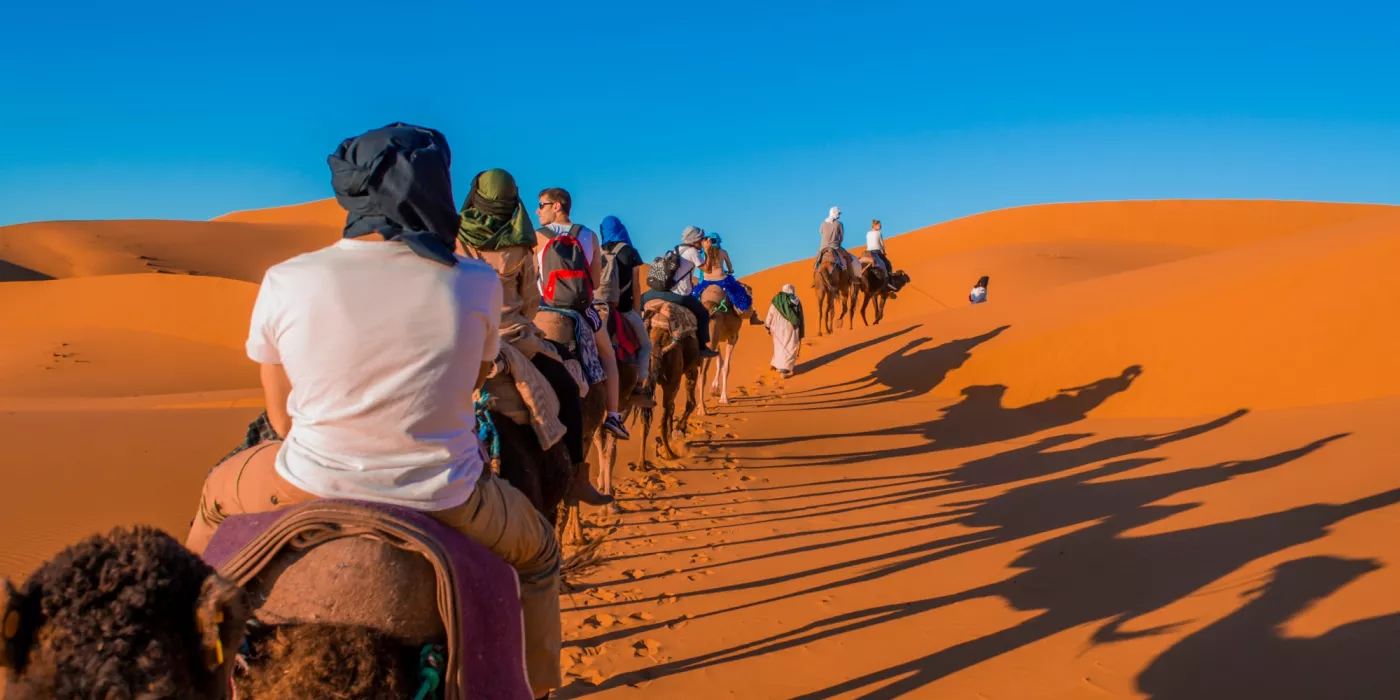La emoción crece cuando nos acercamos a Merzouga, a las puertas del desierto del Sahara. Aquí empieza una de las partes más esperadas del viaje: el paseo en dromedario por las dunas del Erg Chebbi. El sol cae lentamente y tiñe el paisaje de tonos naranjas, dorados y rosados. Llegamos al campamento nómada, donde cenamos bajo las estrellas y disfrutamos de música tradicional bereber alrededor del fuego. Dormir en una jaima en mitad del desierto es algo difícil de olvidar.